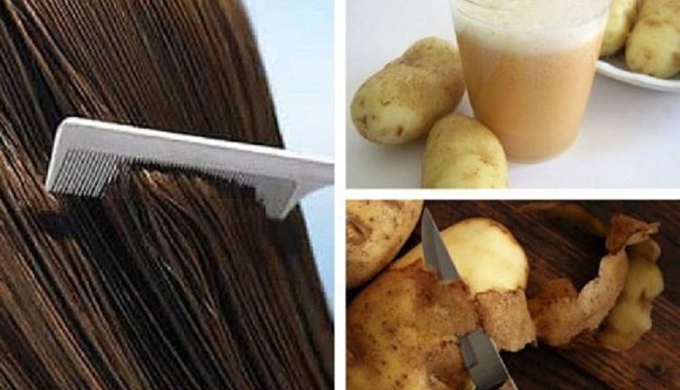 بشر البطاطس جيدا ، ثم يوضع كوب من عصير البطاطس على الشعر ثم يدلك الشعر جيدا من جذوره وحتى أطرافه لمدة لا تقل عن عشرين دقيقة ، ثم يغسل الشعر جيدا بالماء الفاتر .