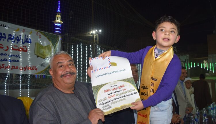 وقد بدأ الحفل بالسلام الجمهورى ثم القرأن الكريم، وكلمة عن فضل حفظ القرأن الكريم، ثم فقرة إنشاد دينى قدمتها فرقة متخصصة فى المدح النبوى، وبعد ذلك تم تكريم الفائزين وتسليمهم الجوائز، حيث تم تكريم 122 متسابق و تسليمهم شهادات تقدير وجوائز مالية مقدمة من عضو هيئة مكتب المحافظة بحزب مستقبل وطن الحاج رجب حافظ.