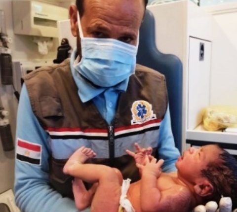 وكانت غرفة عمليات مرفق إسعاف بني سويف،قد تلقت بلاغاً بوجود سيدة في حالة وضع بقرية عزبة عايش بطريق بني سويف /الزعفرانة الجديد والتي تبعد 85 كم عن مدينة بني سويف شرقا في المنطقة الصحراوية الحدودية بين محافظتي بني سويف والبحر الأحمر، وعلى الفور تم توجيه إحدي سيارات فرع الهيئة بالمحافظة بقيادة الطاقم المسعف عبد الستار أحمد والسائق سامح قرني المتمركزة علي طريق بني سويف الزعفرانة الجديد لإنقاذ السيدة ونقلها الي أقرب مستشفى
