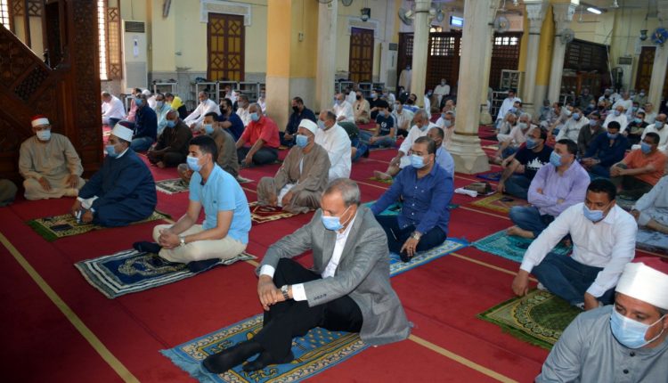 شهد عبد الحميد الهجان محافظ القليوبية أول صلاة للجمعة من مسجد ناصر بمدينة بنها في ظل تطبيق الإجراءات الاحترازية ضد فيروس كورو