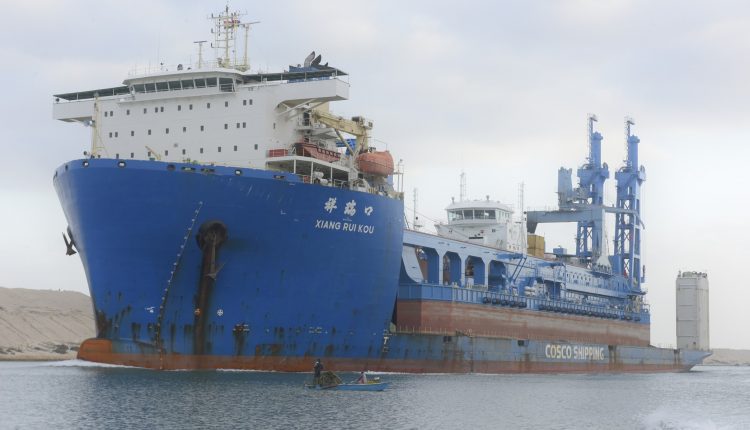 بالصور..قناة السويس تشهد عبور السفينة الحاملة للكراكة”مهاب مميش”