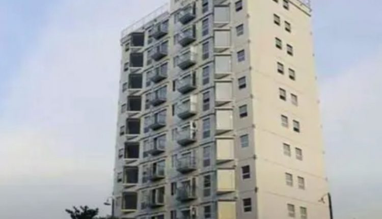 وتم بناء الوحدات السكنية، كل منها بحجم حاوية نقل بحرية، في مصنع، ثم نقلت بسرعة إلى موقع البناء، مكدسة فوق بعضها البعض ومثبتة في مكانها في برج كامل التكوين.