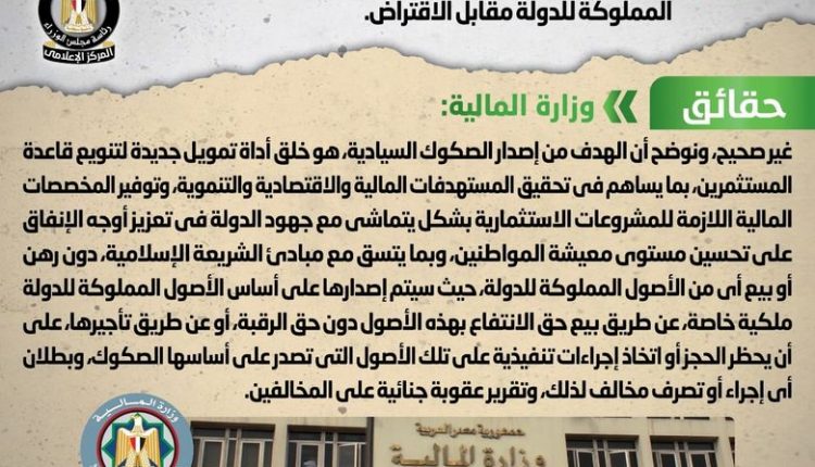 شائعة:اعتزام الدولة إصدار الصكوك السيادية كأداة لرهن الأصول المملوكة للدولة مقابل الاقتراض