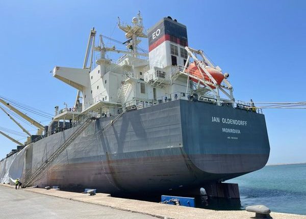 ويذكر ان السفينة Jan Oldendroff تعد ثاني سفينة يتم شحنها بمادة الكلينكر الخام والمتجهة لميناء TAKORADI بغانا وميناء DOUALA بالكاميرون بغرب إفريقيا، وذلك بعد نجاح شحن أول سفينة لمادة الكلينكر في مطلع الشهر الجاري، حيث تم شحن أول سفينة بإجراءات بيئية محددة ومعايير دقيقة تحول دون حدوث تلوث بيئي أثناء عملية الشحن والتشوين وذلك في إطار توجيهات السيد رئيس الجمهورية لتحويل موانئ الجمهورية إلى موانئ خضراء صديقة للبيئة واتباع المعايير العالمية للاستدامة.